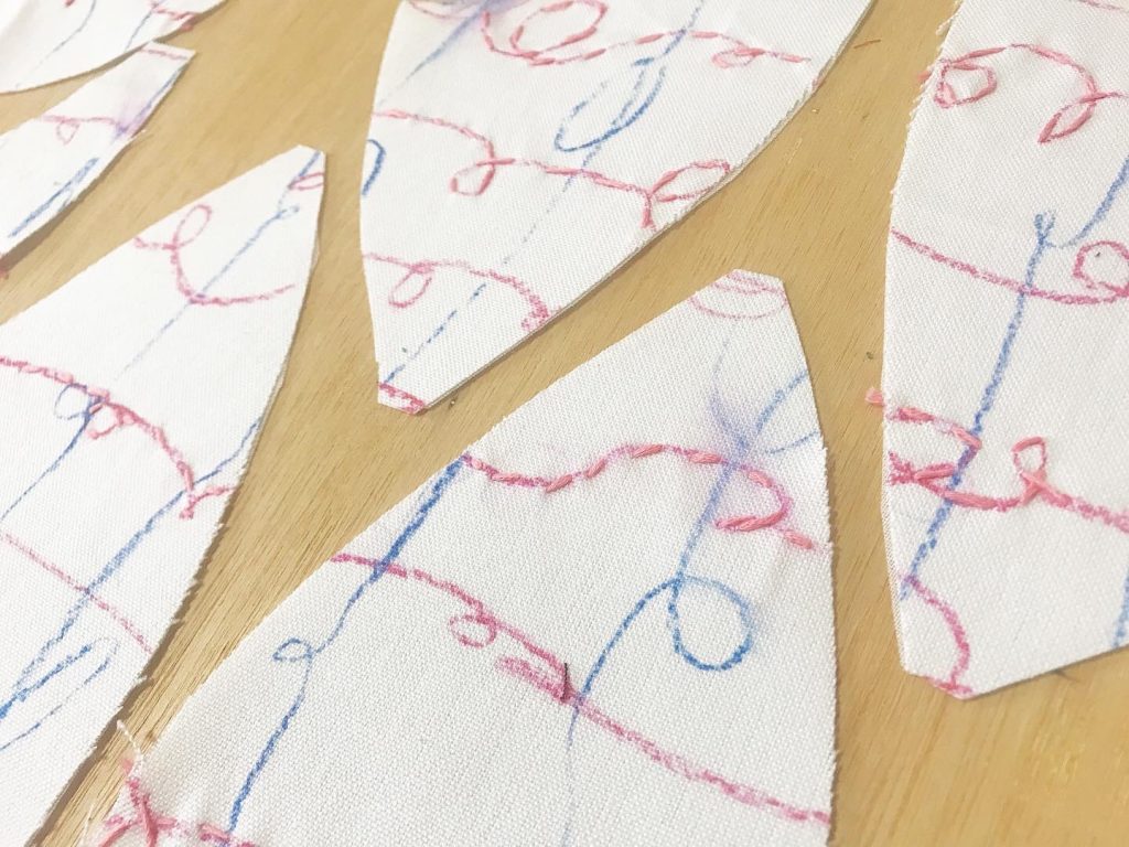 一枚の布を色んな形に切って、不規則になったデザインをまた繋げた時、どんな作品が生まれるのか。それがとっても楽しみです(^^)