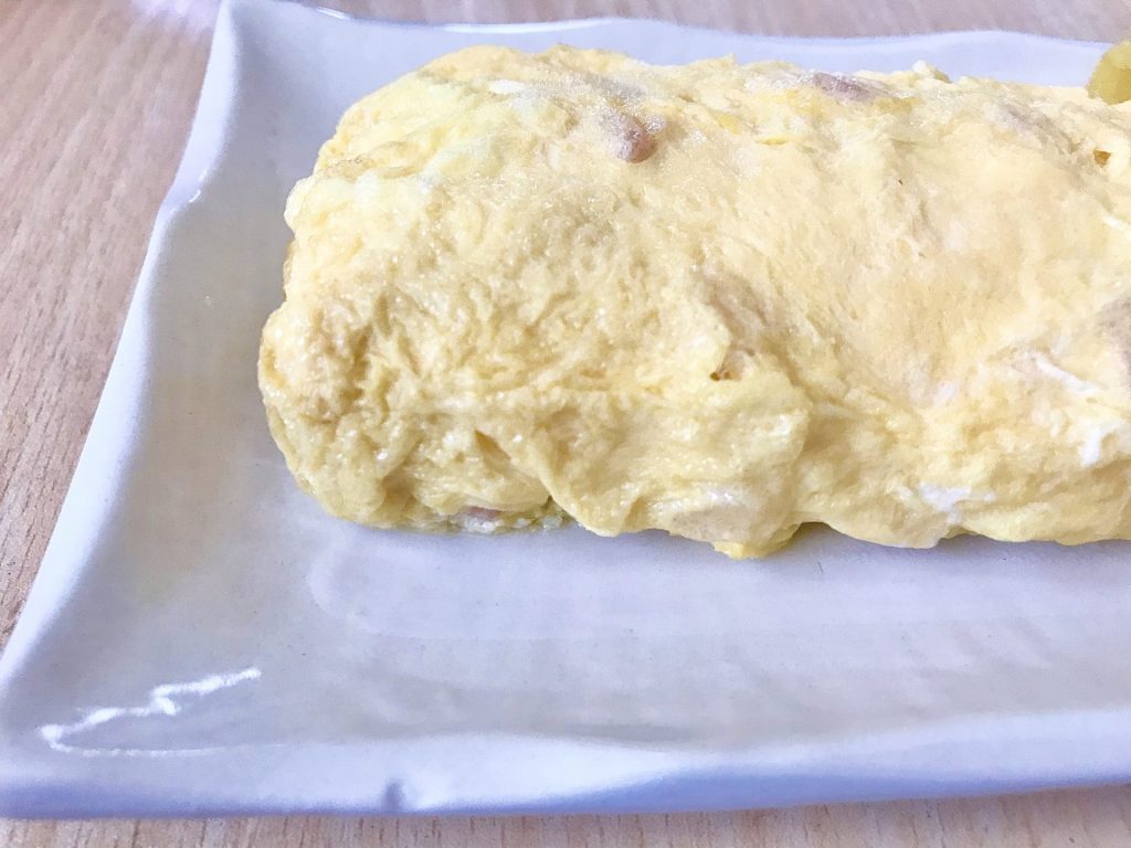 卵焼きは 塩とお水のシンプルな味付けが好み。これは 生姜入り。
