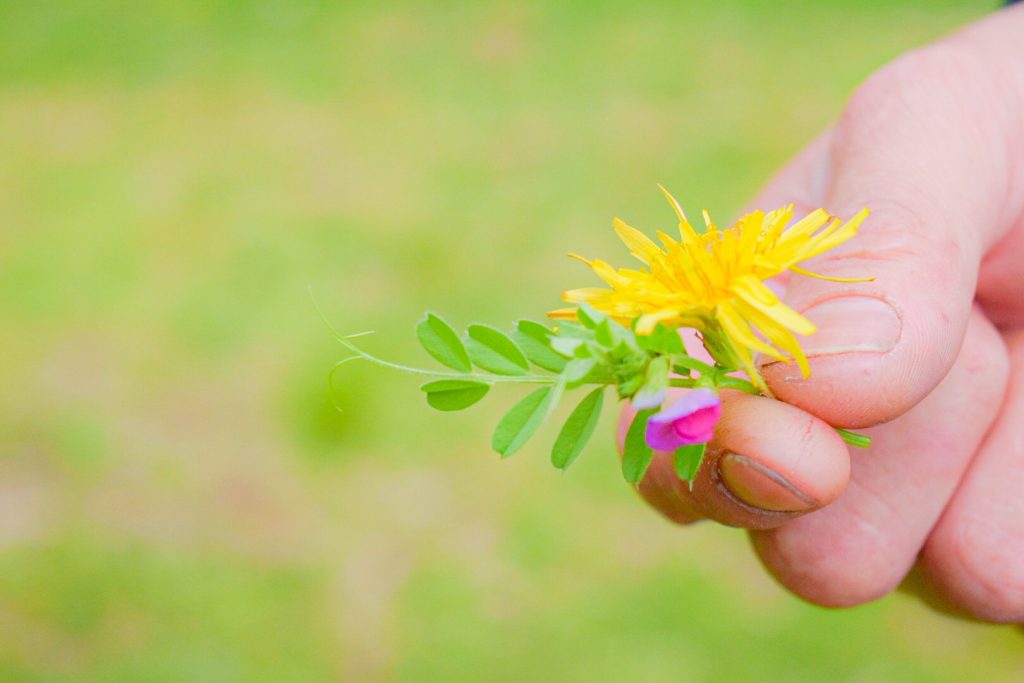 道端に咲いてるお花で作った小さな花束とか、