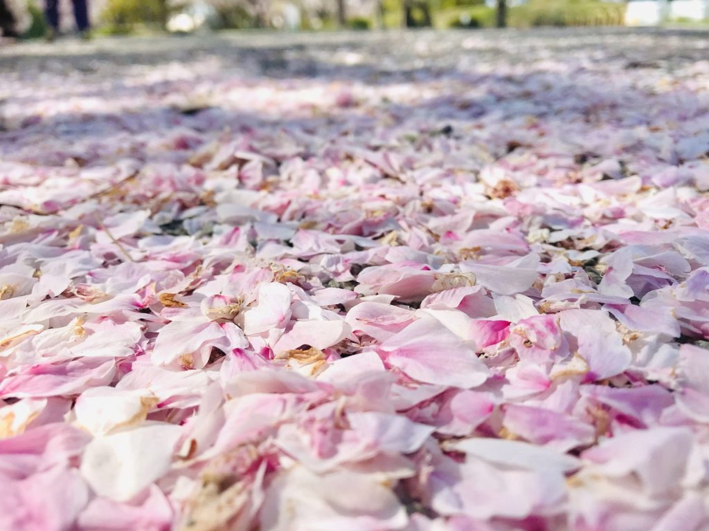 桜の木の下は ピンク色の絨毯。