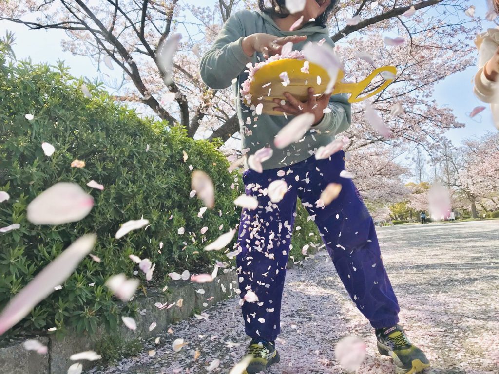 子供たちは この花びらを山盛りかき集めて 花咲爺さん遊び。