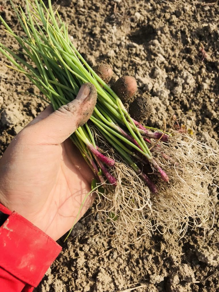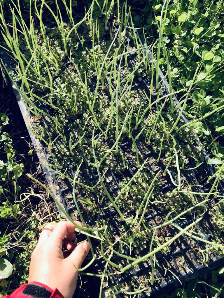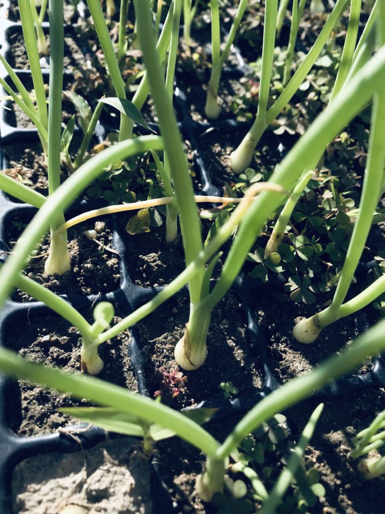 と、早生(わせ)と赤玉に続き 晩生(おくて)の玉ねぎ苗と