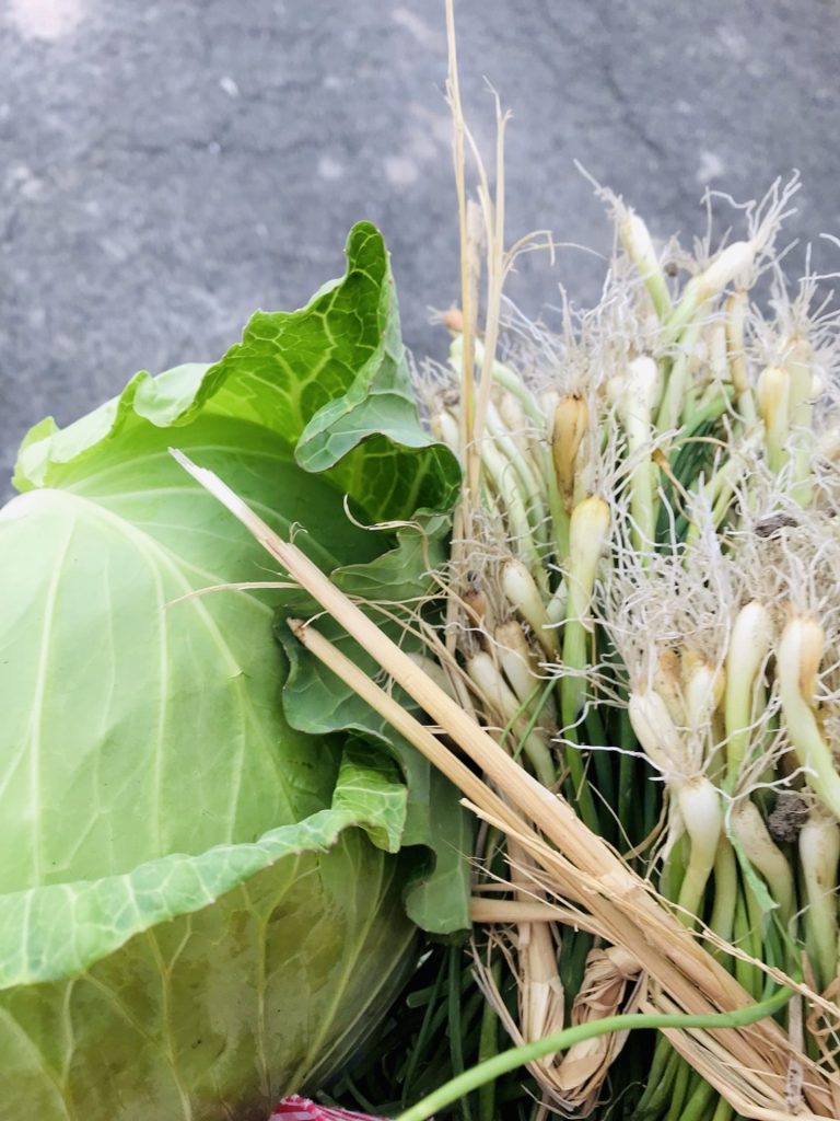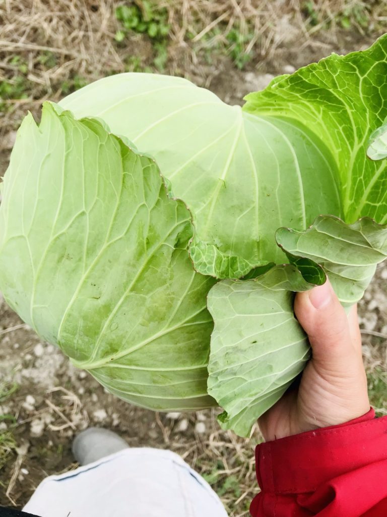 とその場で収穫したキャベツをくれました。有り難いぃ。
