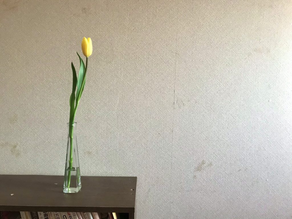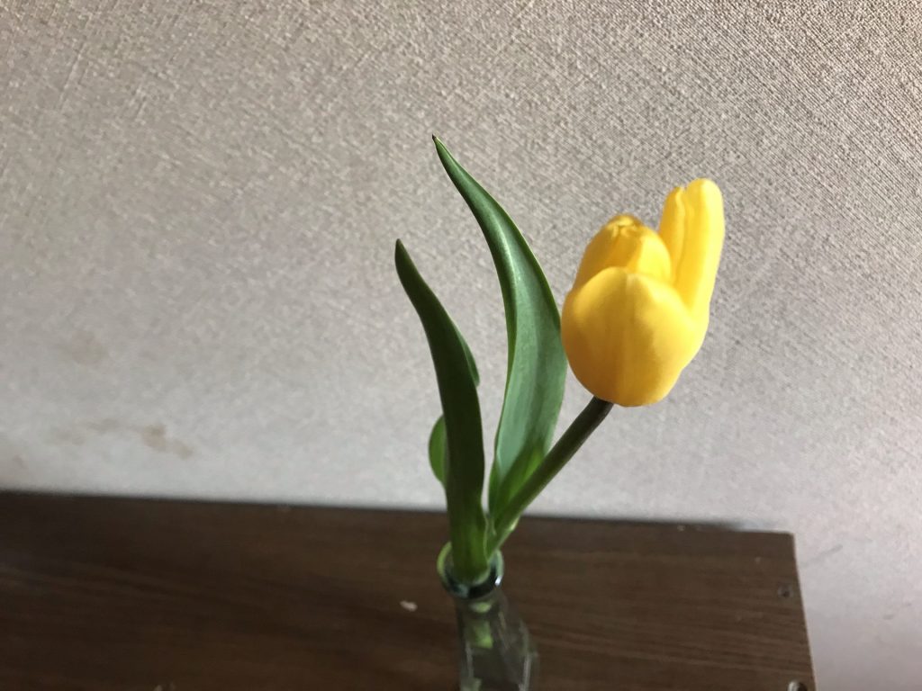 買い物に行ったときに、パッと目に止まった黄色のチューリップ。