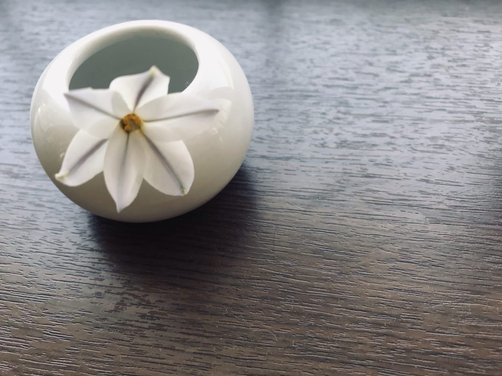 一輪挿しが好きで、花器も一輪のお花にぴったりなものが好きです。