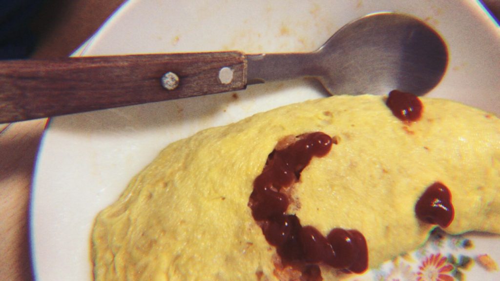 完成したオムライスは なぜかカッチカチ。(オムライスが固いってどう言う事…)